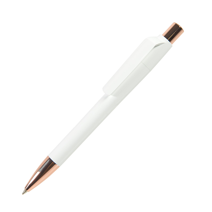 Элегантная ручка Mood - символ благородной роскоши и отражение актуальных тенденций мира дизайна. Ручка обладает приятной тяжестью, свойственной металлическим ручкам, и комфортно лежит в руке благодаря плавной обтекаемой форме корпуса. Широкий клип и корпус обеспечивают большое поле для нанесения логотипа, а высококачественный ABS-пластик гарантирует его стойкость и великолепный внешний вид ручки. Металлические носик и кнопка с зеркальным покрытием "под розовое золото". Процесс обработки металлических деталей проходит под тщательным индивидуальным котролем, что гарантирует гладкость и безупречный блеск покрытия.