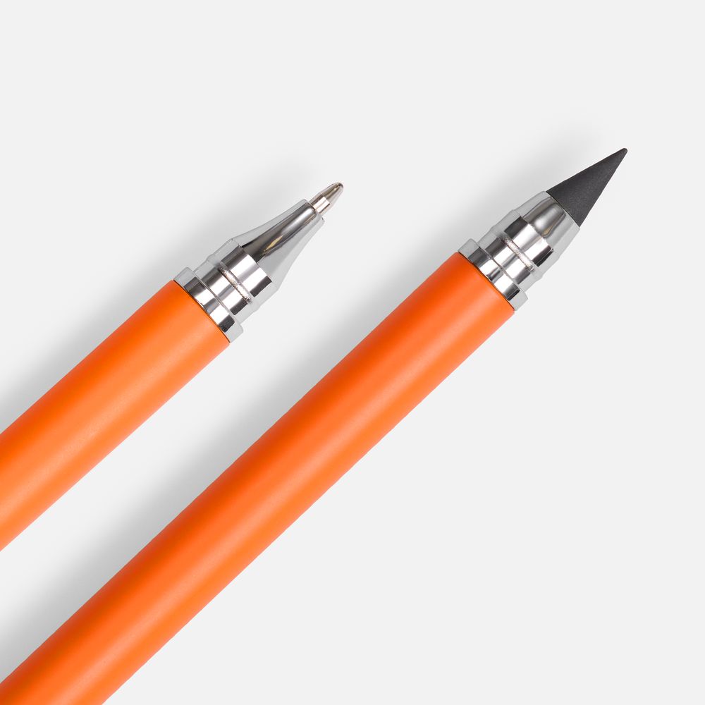 Ручка шариковая и вечный карандаш Diptych, оранжевая с логотипом компании - отличный способ заявить вашу корпоративную идентичность.