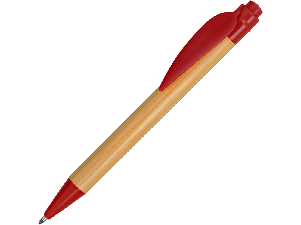 Ручка шариковая Листок, бамбук/красный с логотипом компании - отличный способ заявить вашу корпоративную идентичность.