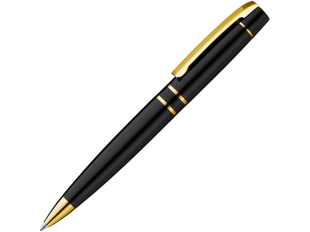 Металлическая шариковая ручка с поворотным механизмом и пружинным клипом. Фурнитура с позолоченной отделкой.