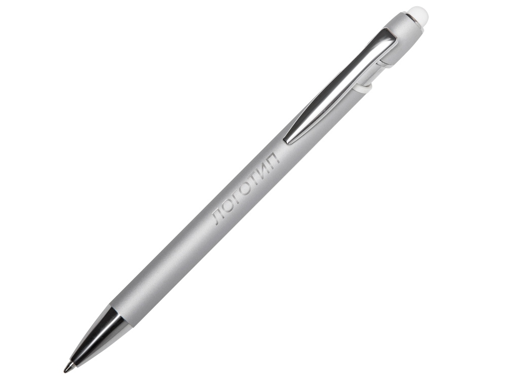 Компания «Эклектика BY» осуществляет нанесение логотипа на сувенирную продукцию: Ручка-стилус металлическая шариковая Sway Monochrome с цветным зеркальным слоем, серебристый с белым. Арт. 427939