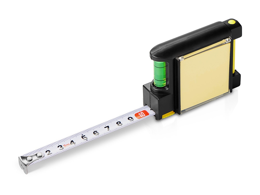 Главная ->Корпоративные подарки и рекламные сувениры на складе -> Брелоки с логотипом -> Брелоки-рулетки -> Рулетка на 2 м с уровнем и блоком для записей Nerd