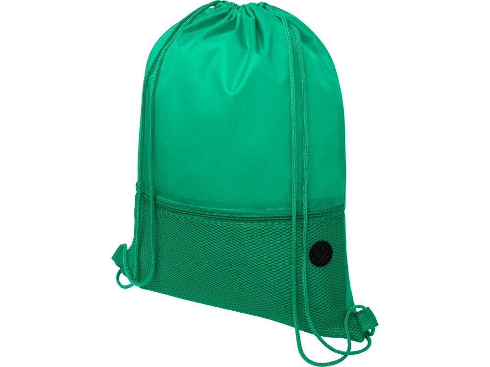 Сетчатый рюкзак со шнурком Oriole, зеленый с логотипом компании - отличный способ заявить вашу корпоративную идентичность.