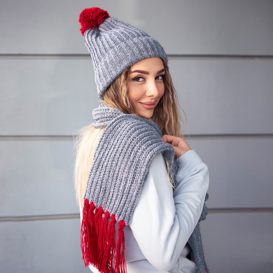 Шапка и шарф GoSnow с ярким помпоном и кисточками с логотипом компании - отличный способ заявить вашу корпоративную идентичность.