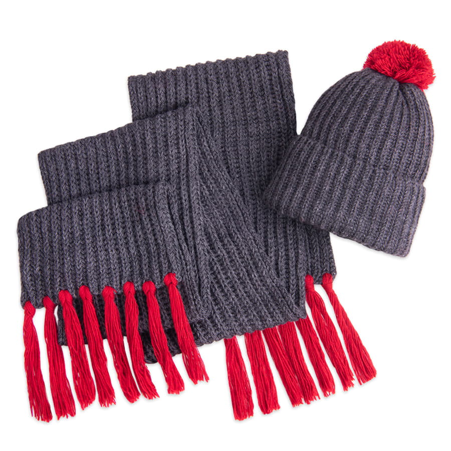 Шапка и шарф GoSnow с ярким помпоном и кисточками с логотипом компании - отличный способ заявить вашу корпоративную идентичность.