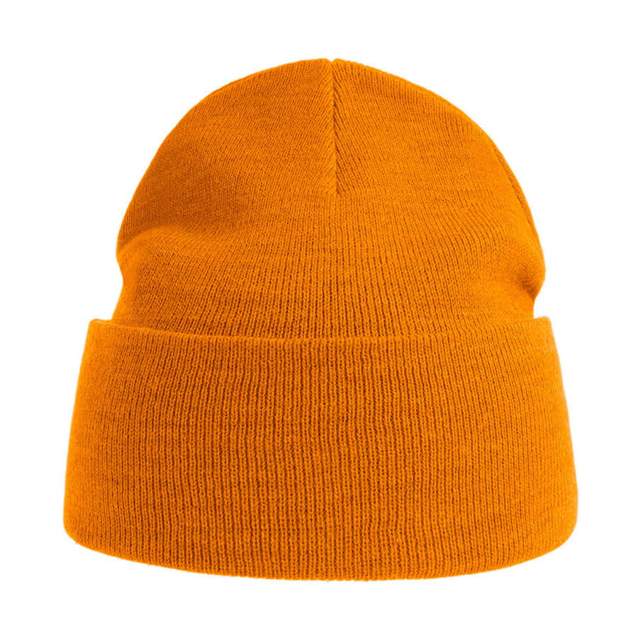 Шапка вязаная PURE с отворотом из пряжи Polylana® горчичный с логотипом компании - отличный способ заявить вашу корпоративную идентичность.