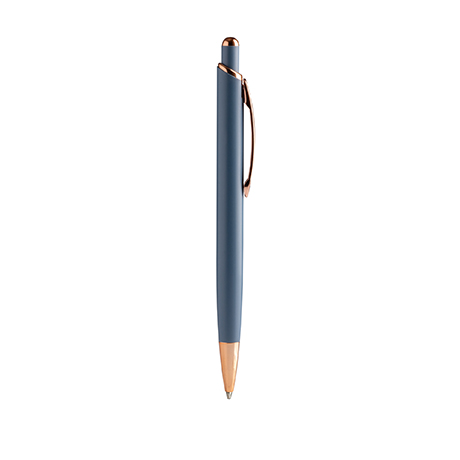 Шариковая ручка с матовой металлической структурой и деталями с медной отделкой.