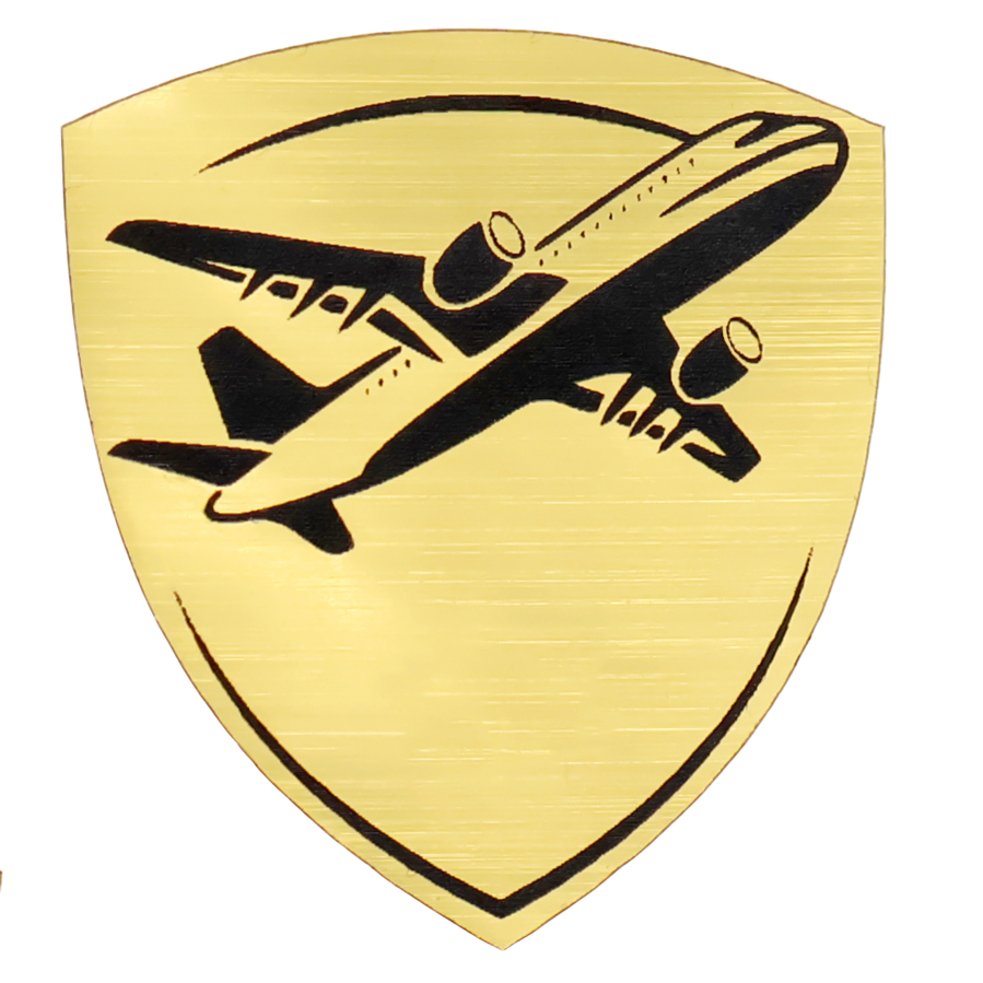 Шильд-наклейка самолет, золото с логотипом компании - отличный способ заявить вашу корпоративную идентичность.