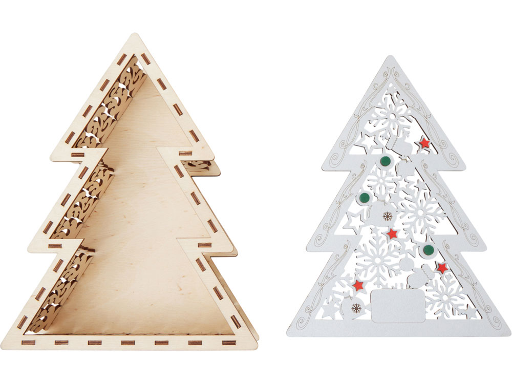 Шкатулка из фанеры в виде елки Firytale , серебристая с логотипом компании - отличный способ заявить вашу корпоративную идентичность.