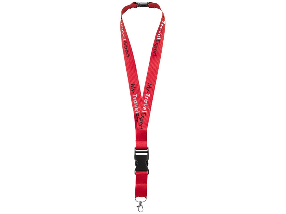 Шнурок Yogi со съемным креплением, красный с логотипом компании - отличный способ заявить вашу корпоративную идентичность.