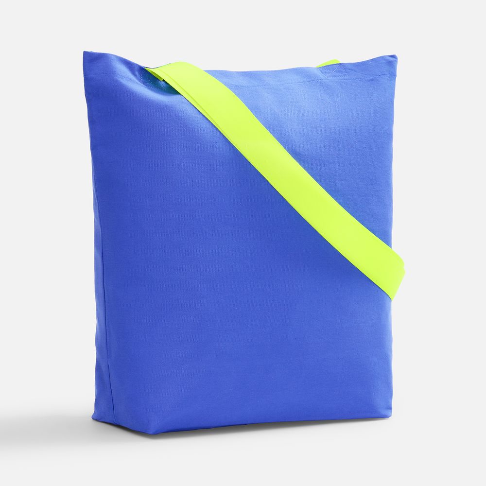 Шопер B5, синий с широкими желтыми ручками с логотипом компании - отличный способ заявить вашу корпоративную идентичность.