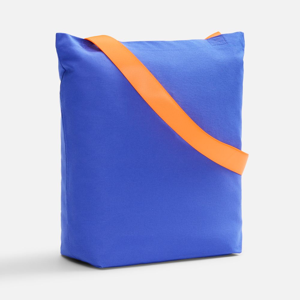 Шопер B5, синий с широкими оранжевыми ручками с логотипом компании - отличный способ заявить вашу корпоративную идентичность.