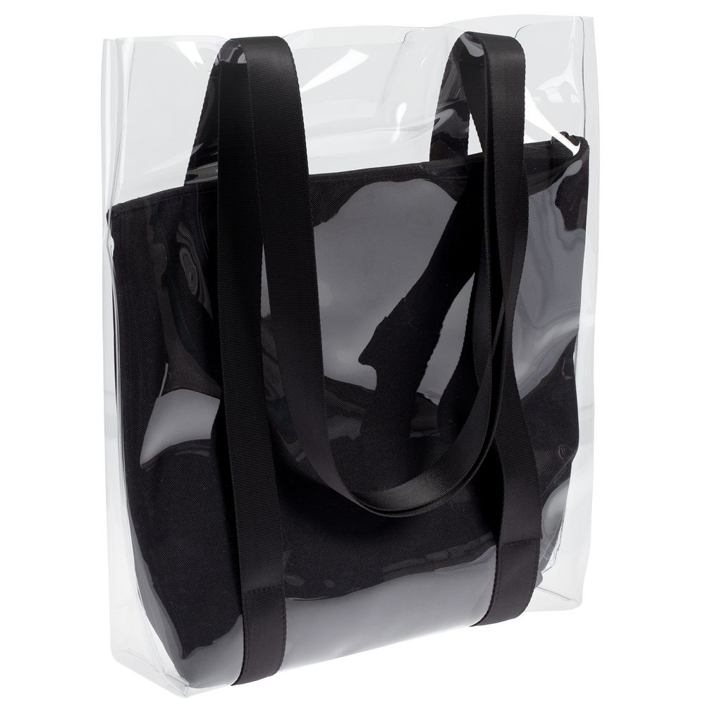 Шопер Clarity с черным органайзером, прозрачный с логотипом компании - отличный способ заявить вашу корпоративную идентичность.