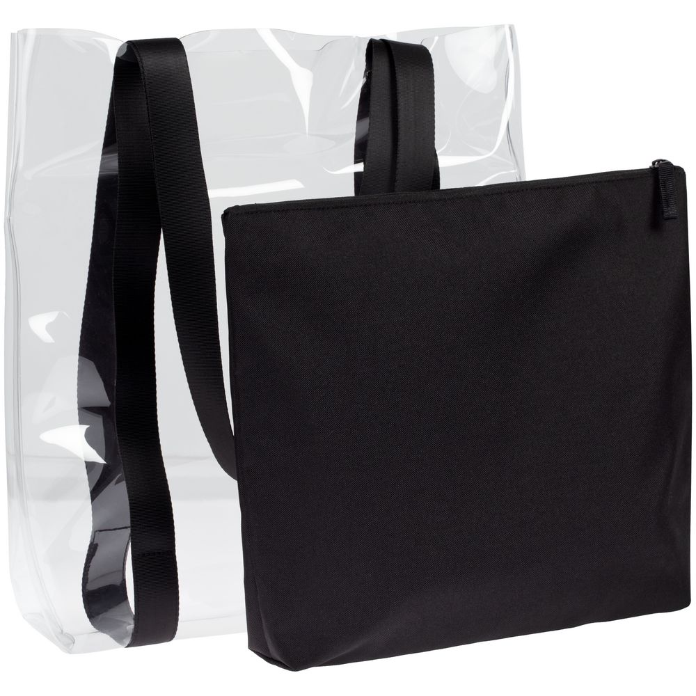 Главная ->Корпоративные подарки и рекламные сувениры на складе -> Сумки -> Шопперы и сумки для пляжа -> Шопер Clarity с черным органайзером, прозрачный