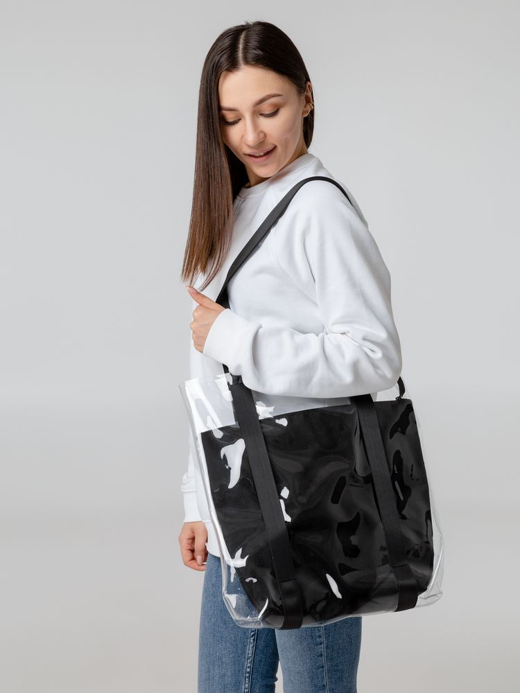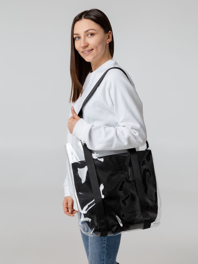 Компания «Эклектика BY» осуществляет нанесение логотипа на сувенирную продукцию: Шопер Clarity с черным органайзером, прозрачный. Арт. 127305