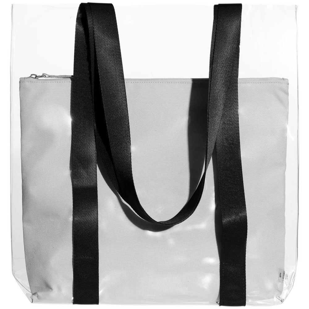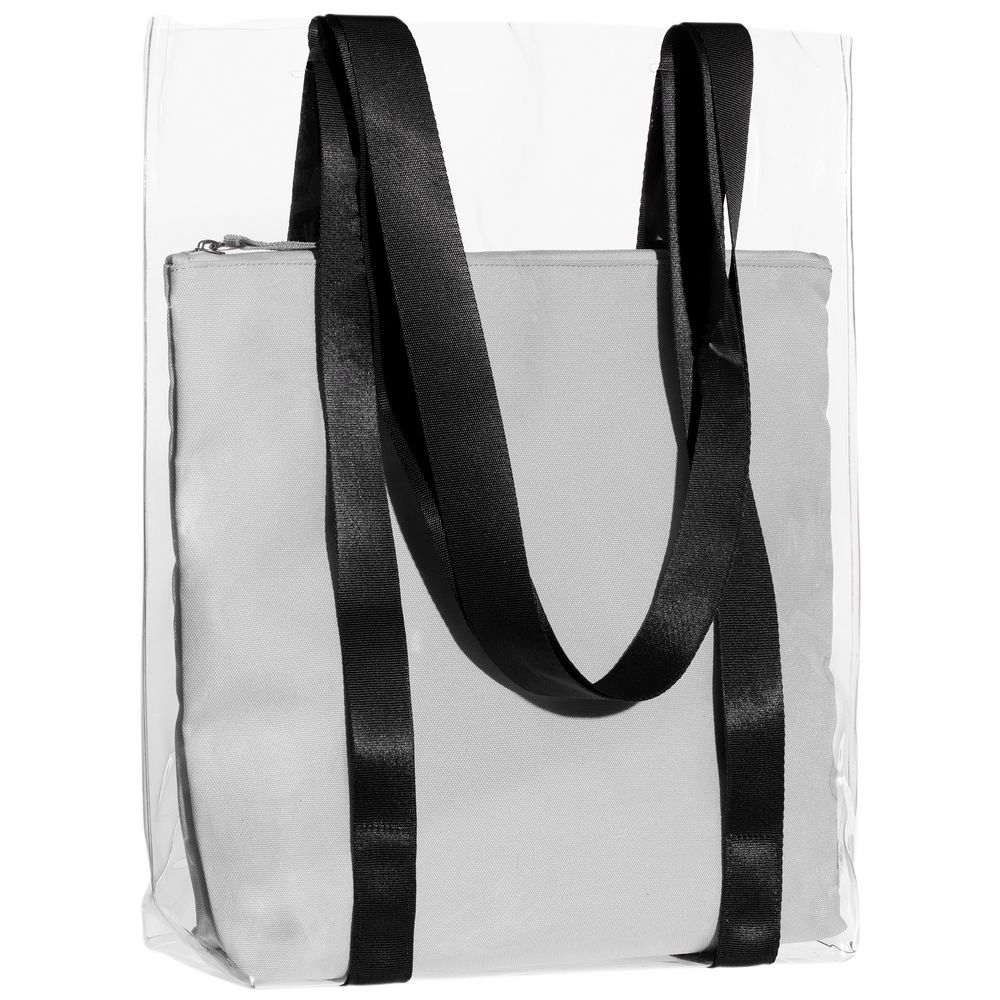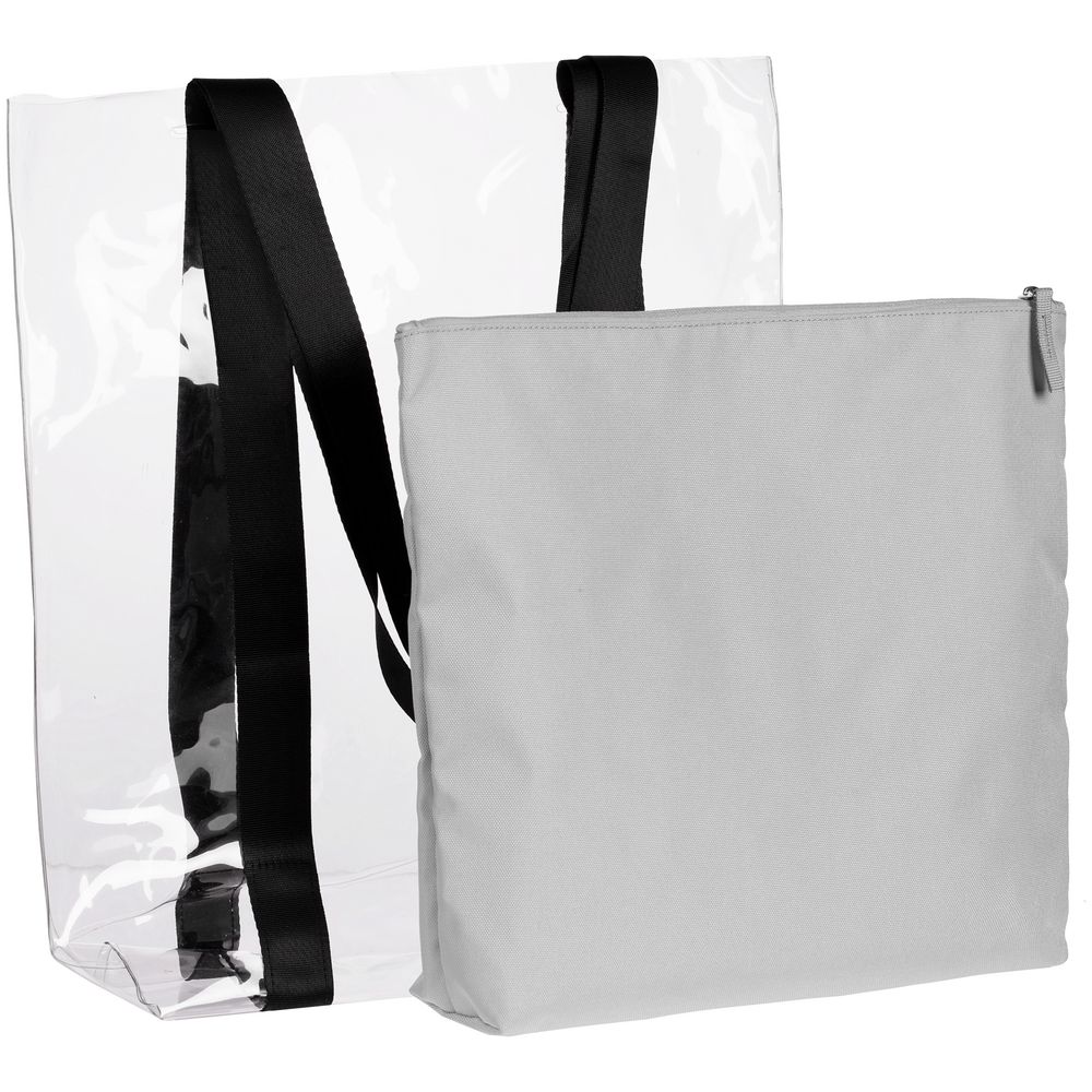 Главная ->Корпоративные подарки и рекламные сувениры на складе -> Сумки -> Шопперы и сумки для пляжа -> Шопер Clarity с серым органайзером, прозрачный