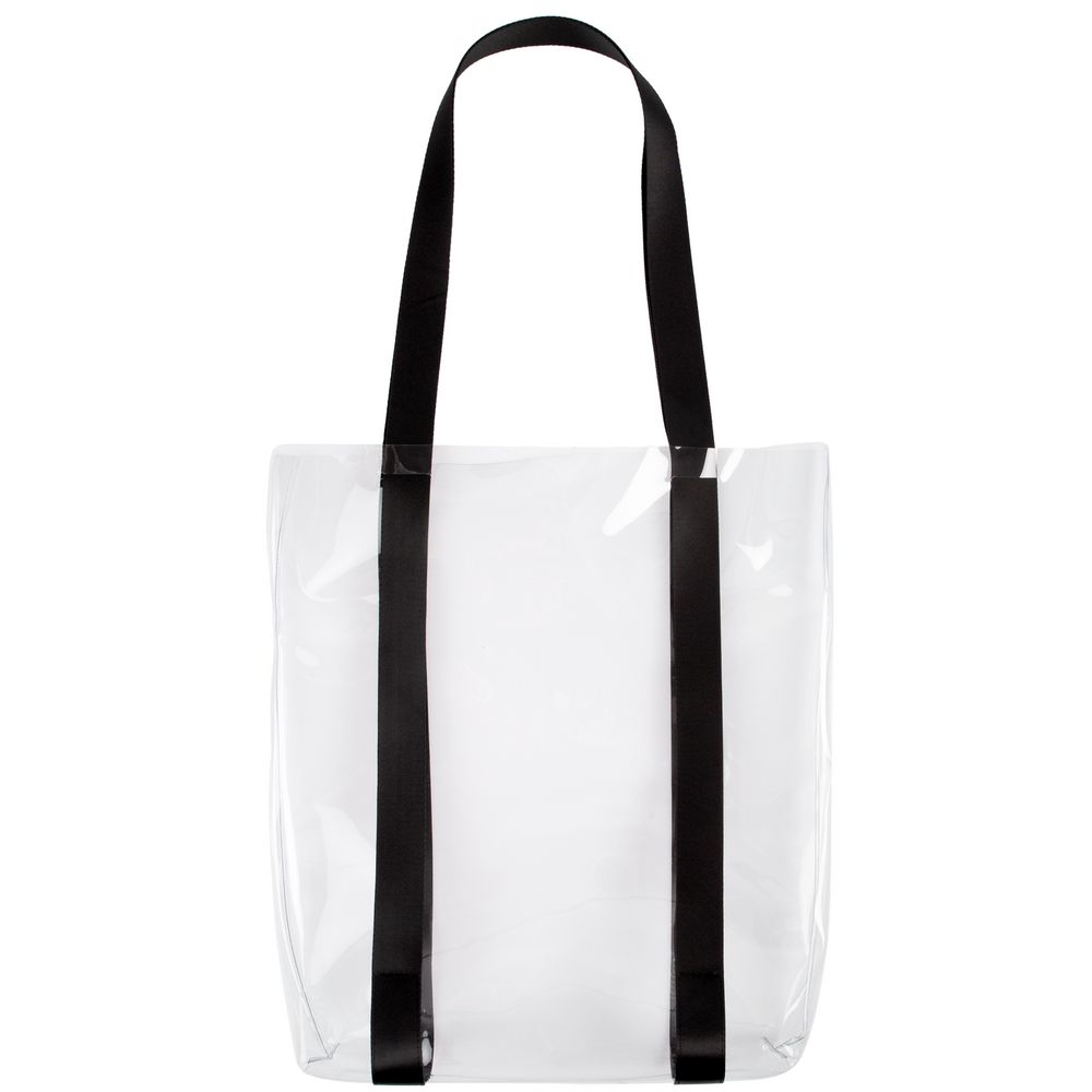 Шопер Clarity, прозрачный с логотипом компании - отличный способ заявить вашу корпоративную идентичность.