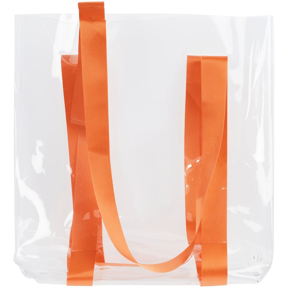 Шопер Clear Fest, прозрачный с оранжевыми ручками с логотипом компании - отличный способ заявить вашу корпоративную идентичность.