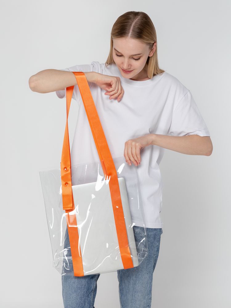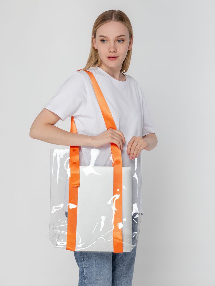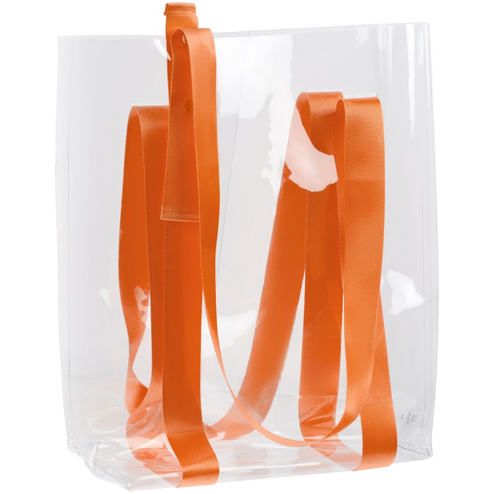 Главная ->Корпоративные подарки и рекламные сувениры на складе -> Сумки -> Шопперы и сумки для пляжа -> Шопер Clear Fest, прозрачный с оранжевыми ручками