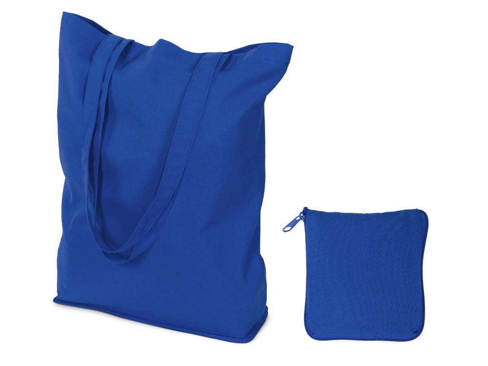 Складывающаяся сумка Skit из хлопка на молнии, синий с логотипом компании - отличный способ заявить вашу корпоративную идентичность.