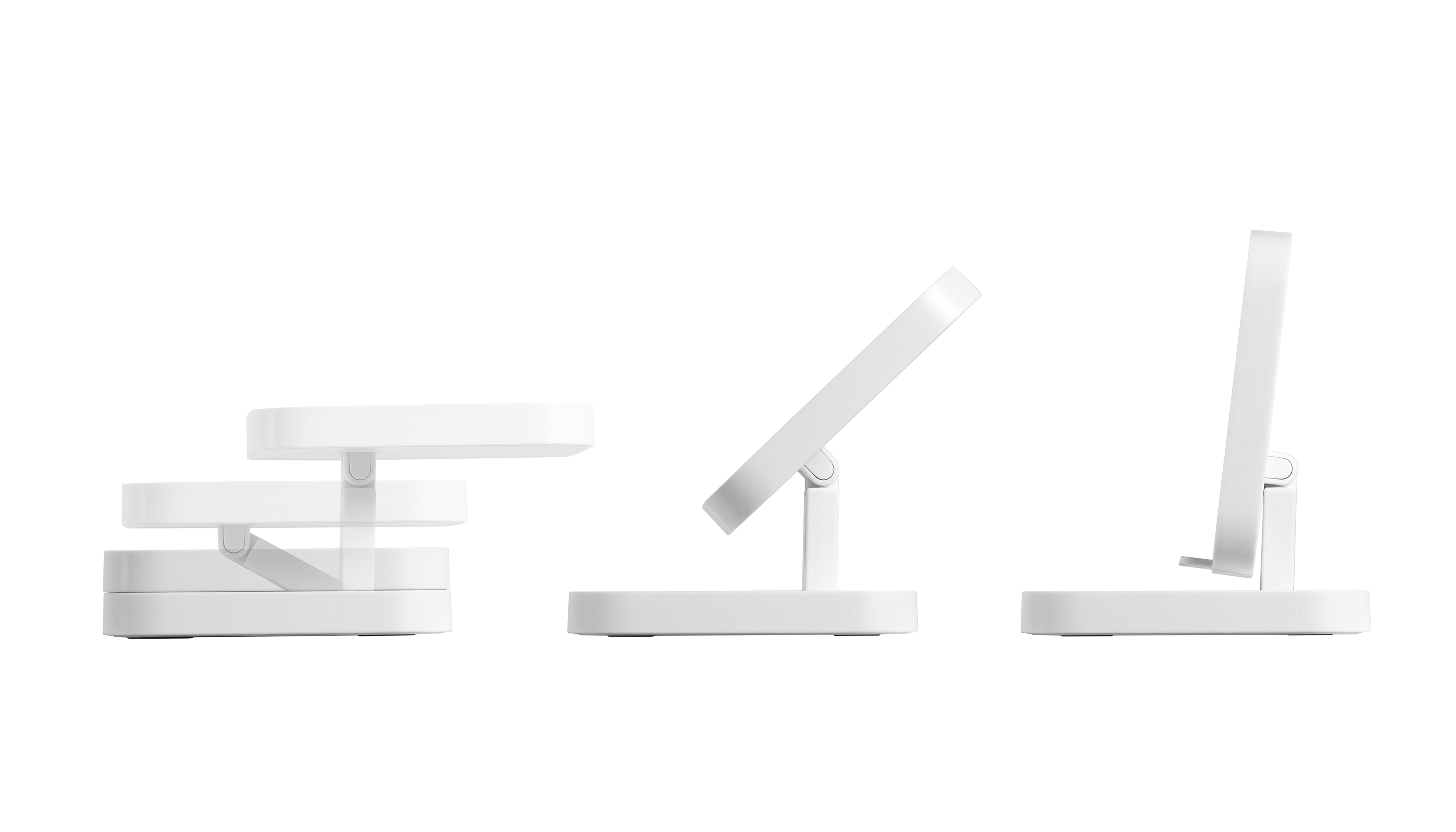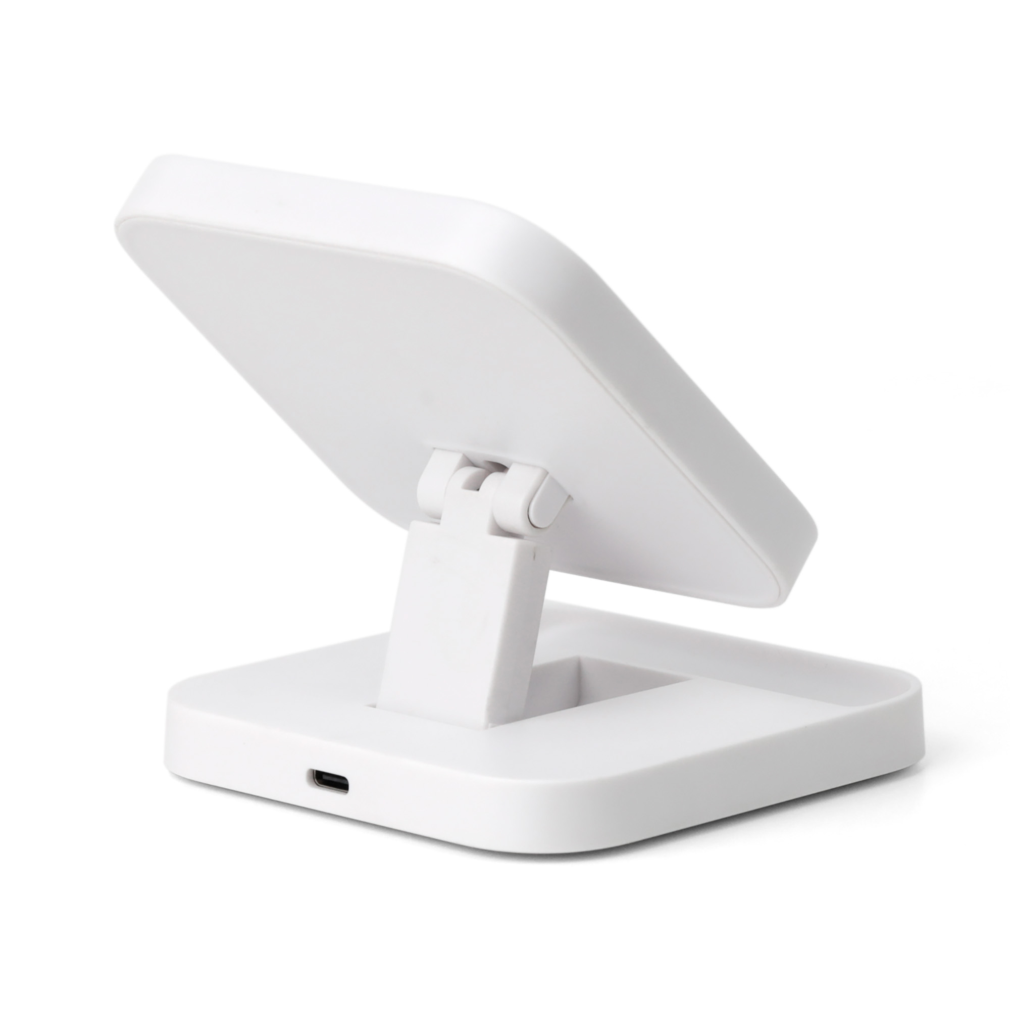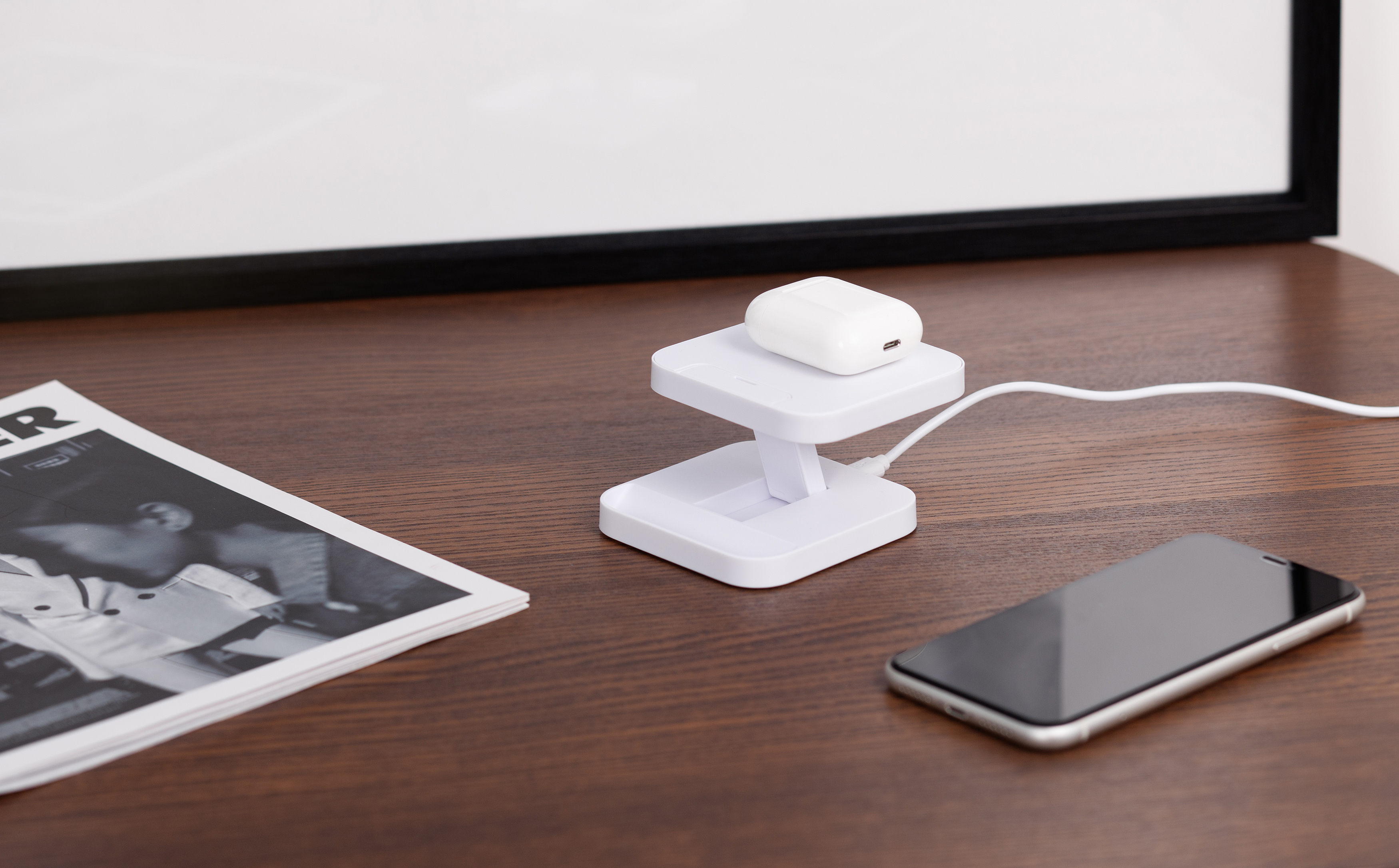 Главная ->Корпоративные подарки и рекламные сувениры на складе -> Сувенирная электроника -> Беспроводные зарядные устройства -> Складная настольная подставка "Flex" с беспроводным (15W) зарядным устройством