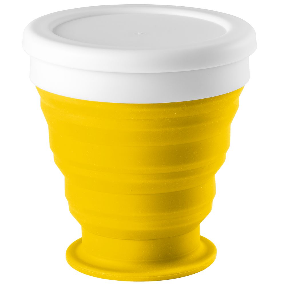 Складной стакан с крышкой Astrada, желтый с логотипом компании - отличный способ заявить вашу корпоративную идентичность.