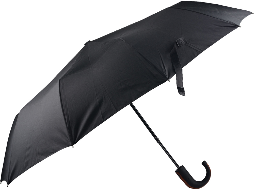 Складной зонт полуавтоматический, черный с логотипом компании - отличный способ заявить вашу корпоративную идентичность.