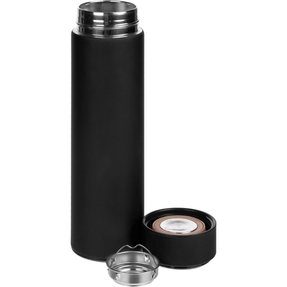 Смарт-бутылка с заменяемой батарейкой Long Therm Soft Touch, черная с логотипом компании - отличный способ заявить вашу корпоративную идентичность.