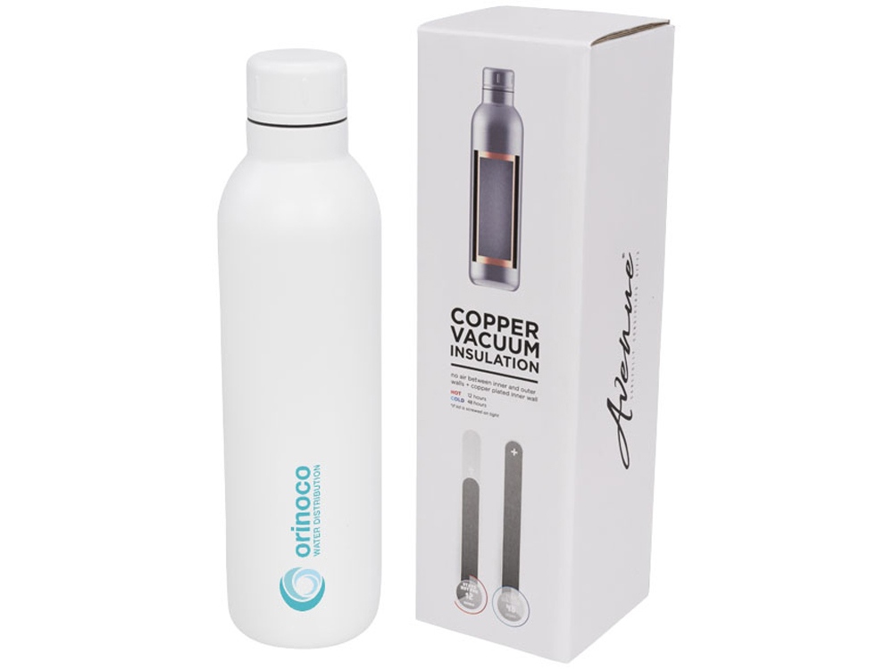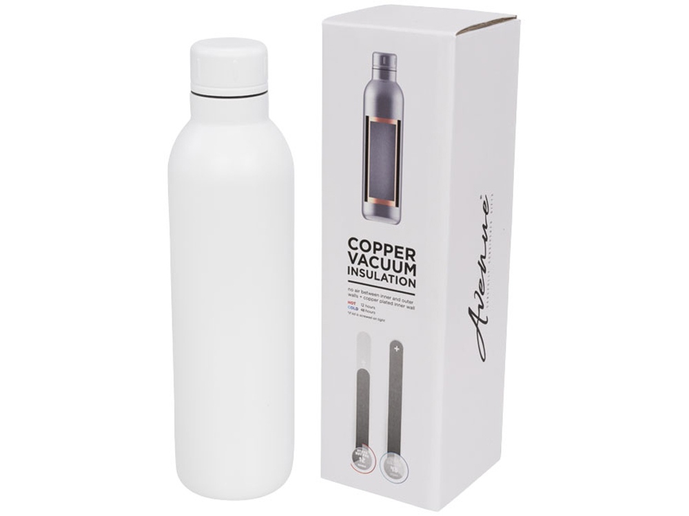 Спортивная бутылка Thor с вакуумной изоляцией объемом 510 мл, белый с логотипом компании - отличный способ заявить вашу корпоративную идентичность.