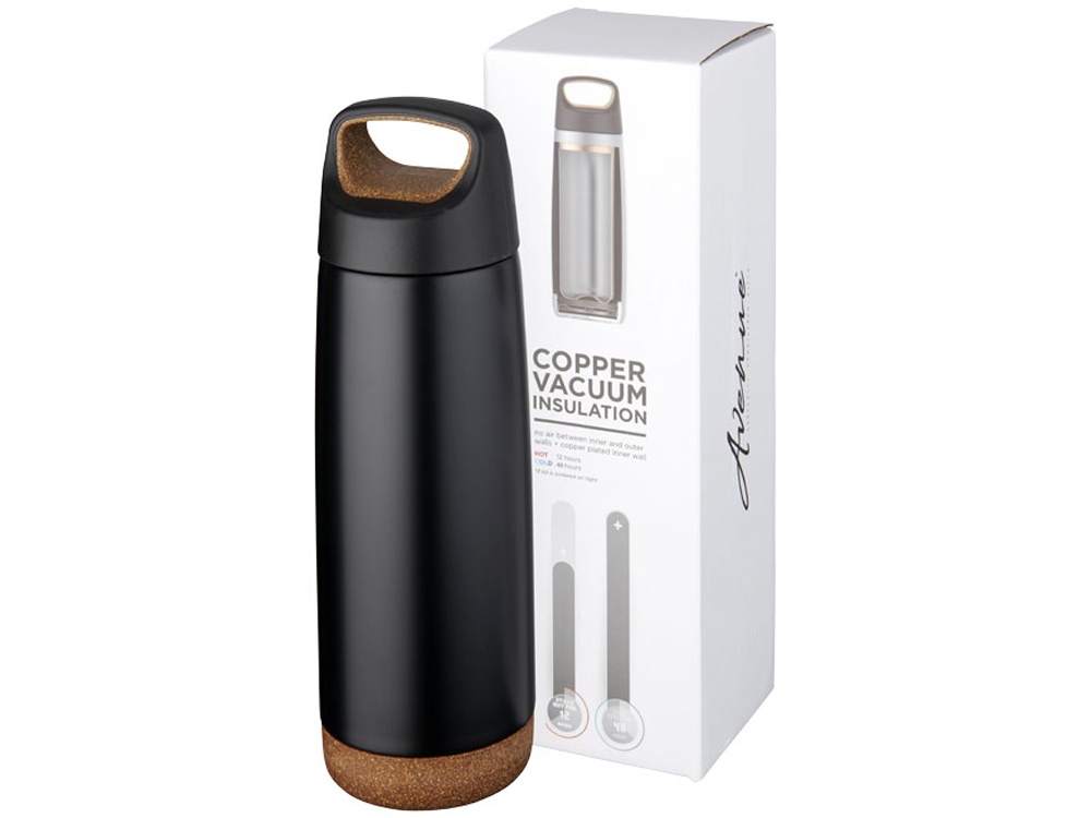 Спортивная медная бутылка с вакуумной изоляцией Valhalla объемом 600 мл, черный