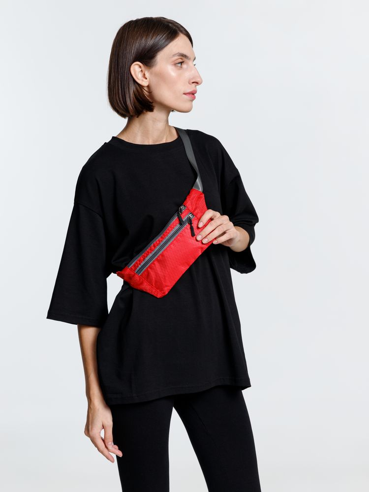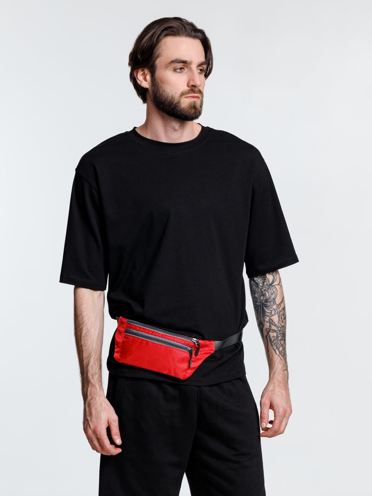 Спортивная поясная сумка Run for Fun, красная с логотипом компании - отличный способ заявить вашу корпоративную идентичность.