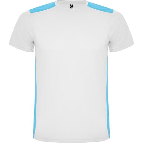 Поставщик корпоративных сувениров и подарков «Эклектика BY» осуществляет нанесение логотипа на сувенирную продукцию: Спортивная футболка DETROIT мужская, БЕЛЫЙ/БИРЮЗОВЫЙ XL. Арт. 202426