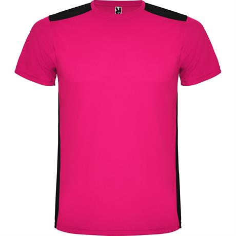 Поставщик корпоративных сувениров и подарков «Эклектика BY» осуществляет нанесение логотипа на сувенирную продукцию: Спортивная футболка DETROIT мужская, ФУКСИЯ/ЧЕРНЫЙ XL. Арт. 202421