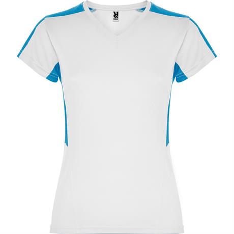 Спортивная футболка SUZUKA женская, БЕЛЫЙ/БИРЮЗОВЫЙ L с логотипом компании - отличный способ заявить вашу корпоративную идентичность.