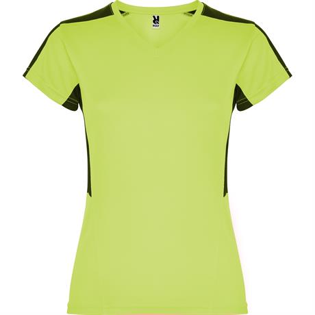 Поставщик корпоративных сувениров и подарков «Эклектика BY» осуществляет нанесение логотипа на сувенирную продукцию: Спортивная футболка SUZUKA женская, ЛАЙМ ЯРКИЙ/ЧЕРНЫЙ S. Арт. 202348