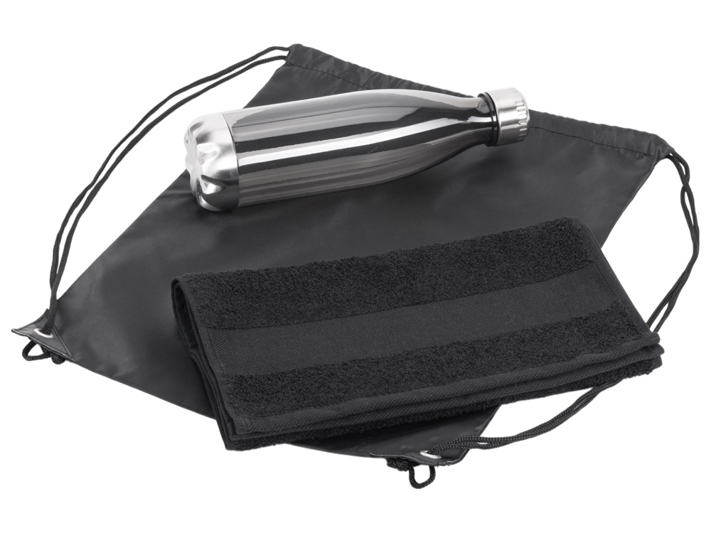 Спортивный набор с бутылкой и полотенцем Beginner, черный с логотипом компании - отличный способ заявить вашу корпоративную идентичность.
