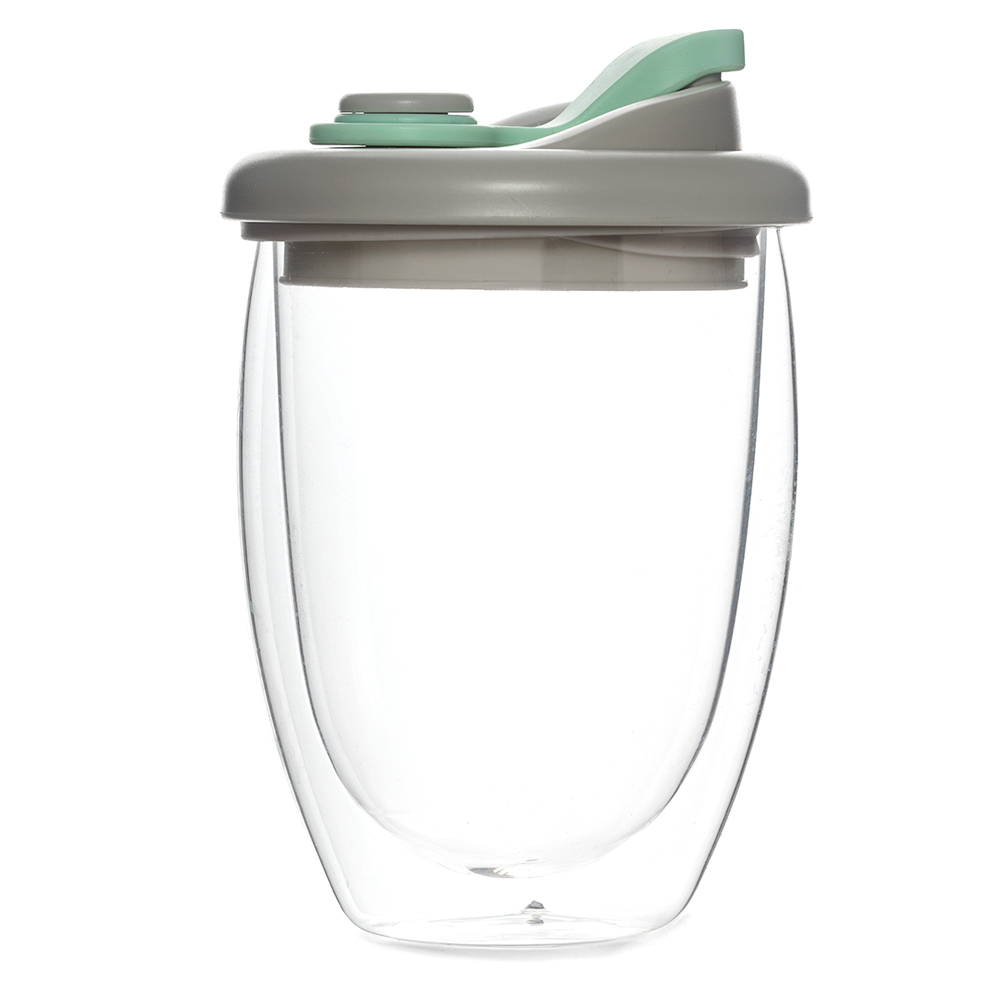 Стакан стеклянный Lotos с двойными стенками и крышкой, бирюзовый с логотипом компании - отличный способ заявить вашу корпоративную идентичность.