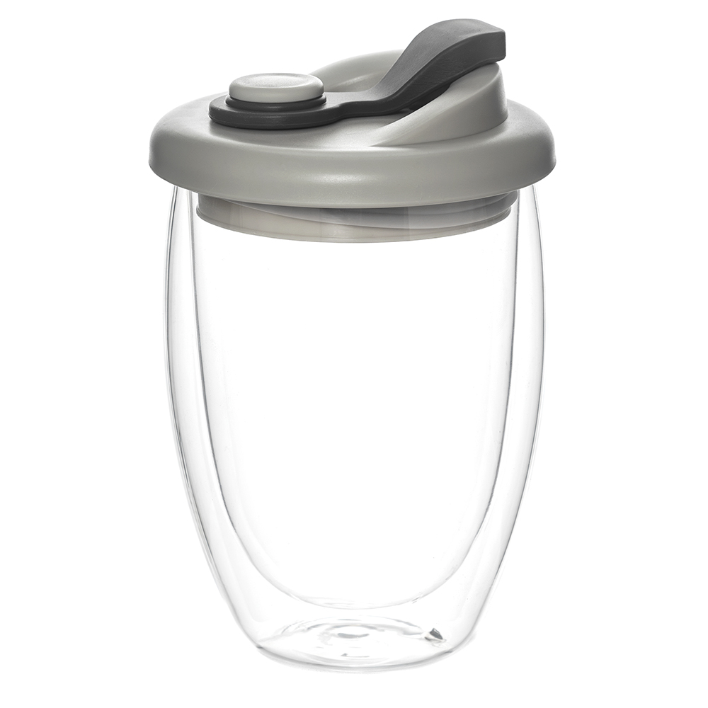 Стакан стеклянный Lotos с двойными стенками и крышкой, серый с логотипом компании - отличный способ заявить вашу корпоративную идентичность.