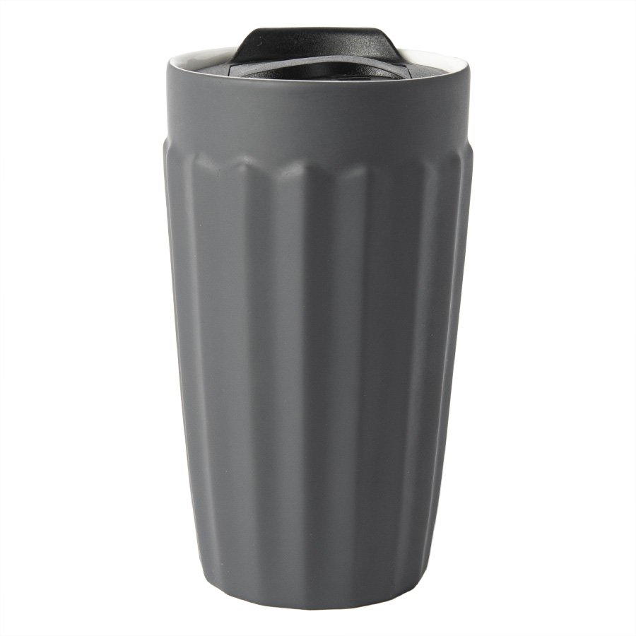 Керамический стакан с двойными стенками, имеет необычную форму с гранями Корпус имеет прорезиненное покрытие, оно отлично подходит для лазерной гравировки: изображение получается ярким и выделяющимся Пластиковая крышка с силиконовым уплотнителем не даст вашему напитку быстро остыть, но рекомендуется использовать температуру напитков не выше 80С Цвет близкий к Pantone 433U Поскольку стакан имеет двойные стенки - на дне изделия находится технологическое отверстие, которое не является браком. Индивидуальная упаковка - коробка из крафтового картона