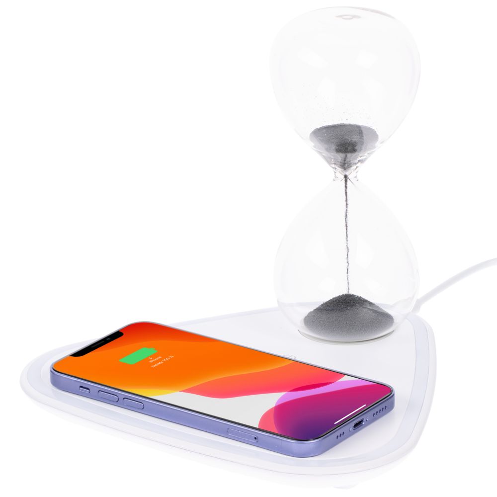 Станция беспроводной зарядки с антистрессом Countdown, белая с логотипом компании - отличный способ заявить вашу корпоративную идентичность.