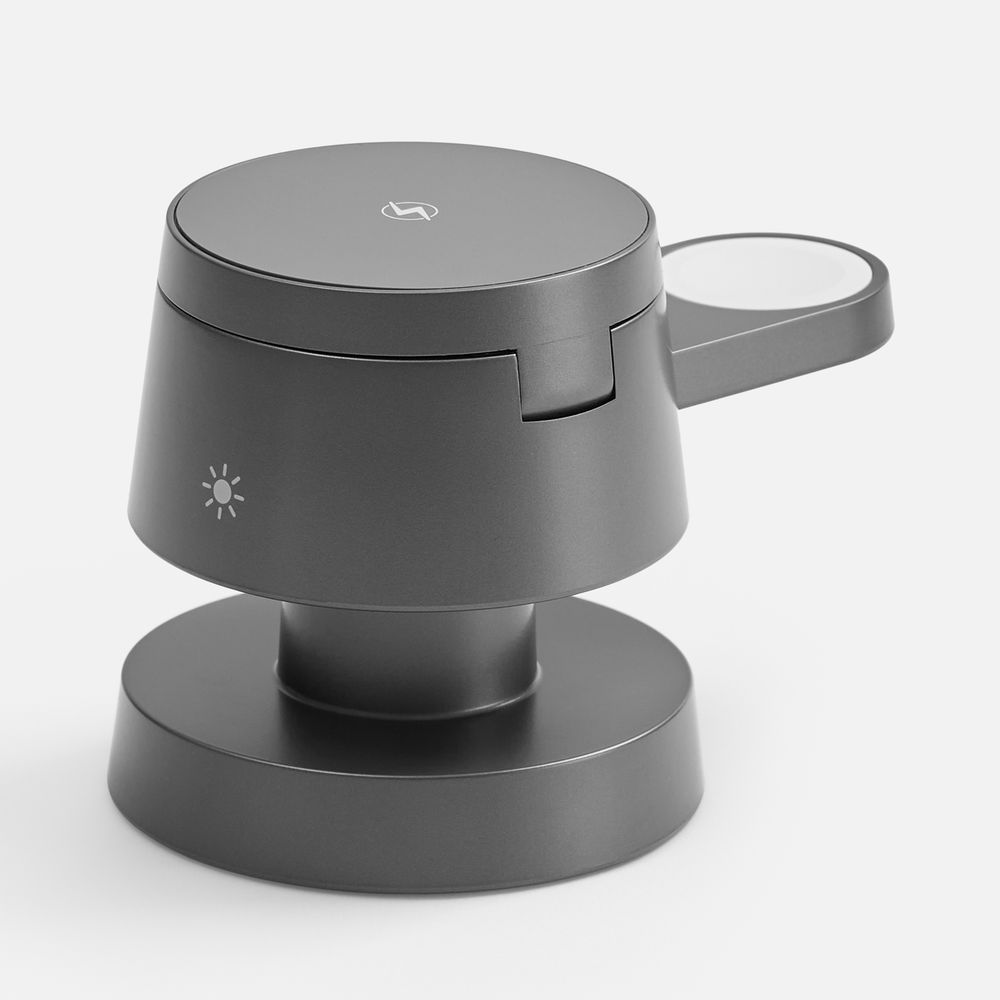 Lume — компактное устройство беспроводной зарядки для современных пользователей. Площадки для зарядки наушников и часов легко складываются и не занимают много места, когда не используются.