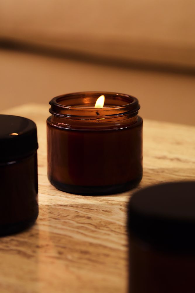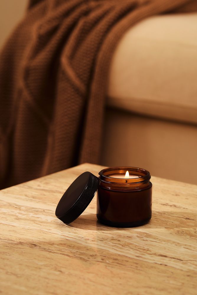 Материал: подсвечник - стекло; крышка - пластик; свеча - парафин, соевый воск, парфюмерная композиция