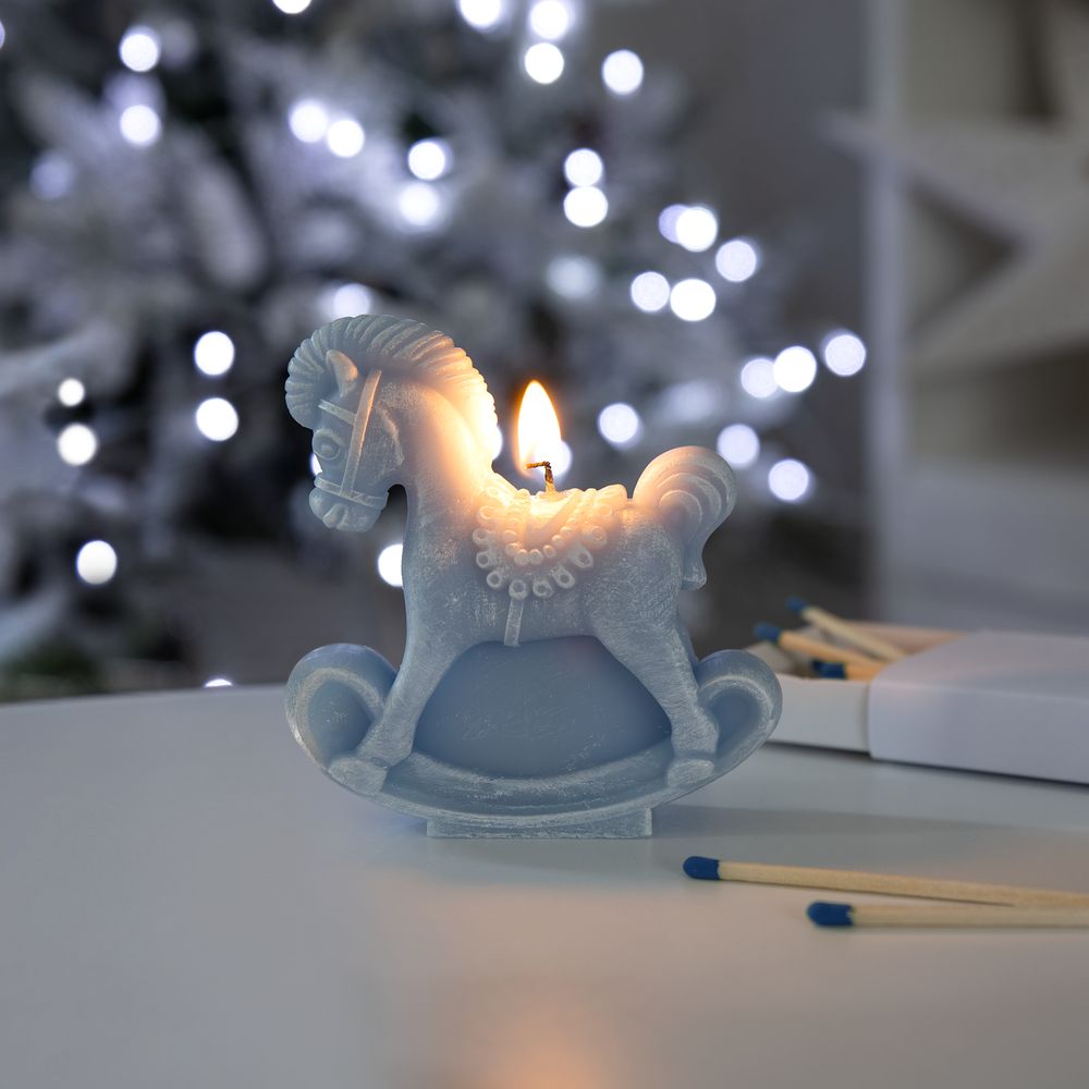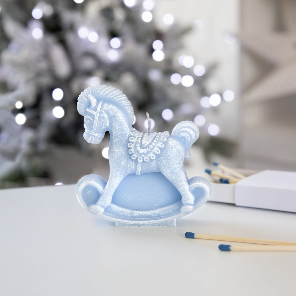 Компания «Эклектика BY» осуществляет нанесение логотипа на сувенирную продукцию: Свеча фигурная «Лошадка-качалка», голубая. Арт. 446482