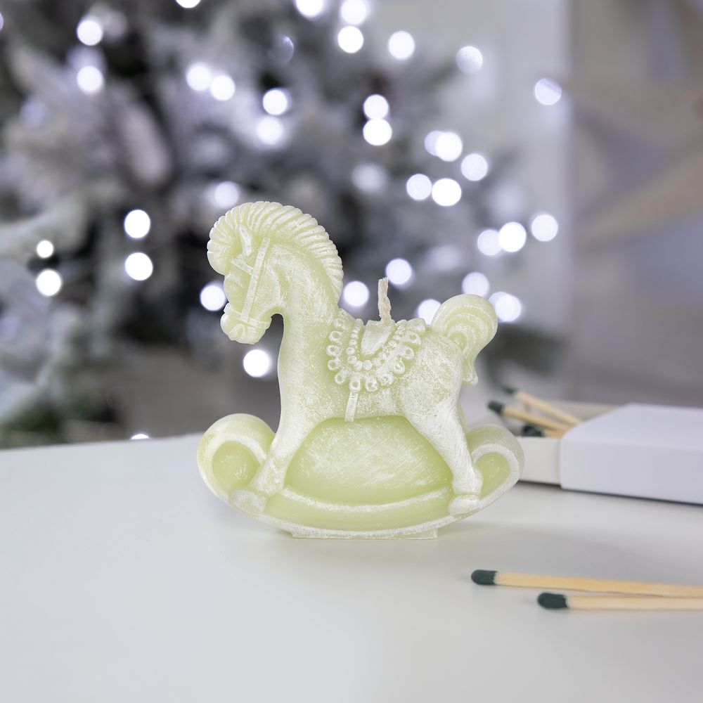 Компания «Эклектика BY» осуществляет нанесение логотипа на сувенирную продукцию: Свеча фигурная «Лошадка-качалка», светло-зеленая. Арт. 446484