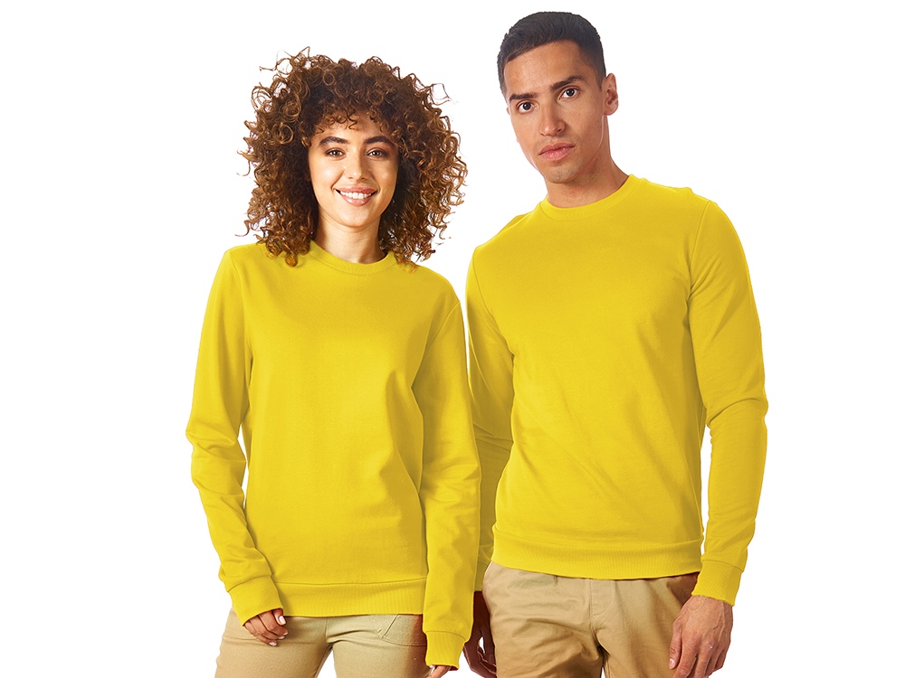 Компания «Эклектика BY» осуществляет нанесение логотипа на сувенирную продукцию: Свитшот Motion унисекс с начесом, жёлтый. Арт. 420352