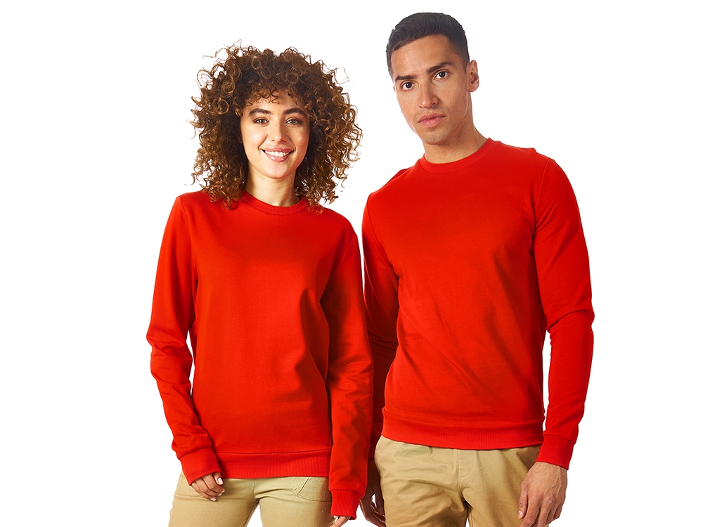Компания «Эклектика BY» осуществляет нанесение логотипа на сувенирную продукцию: Свитшот Motion унисекс с начесом, красный. Арт. 420325