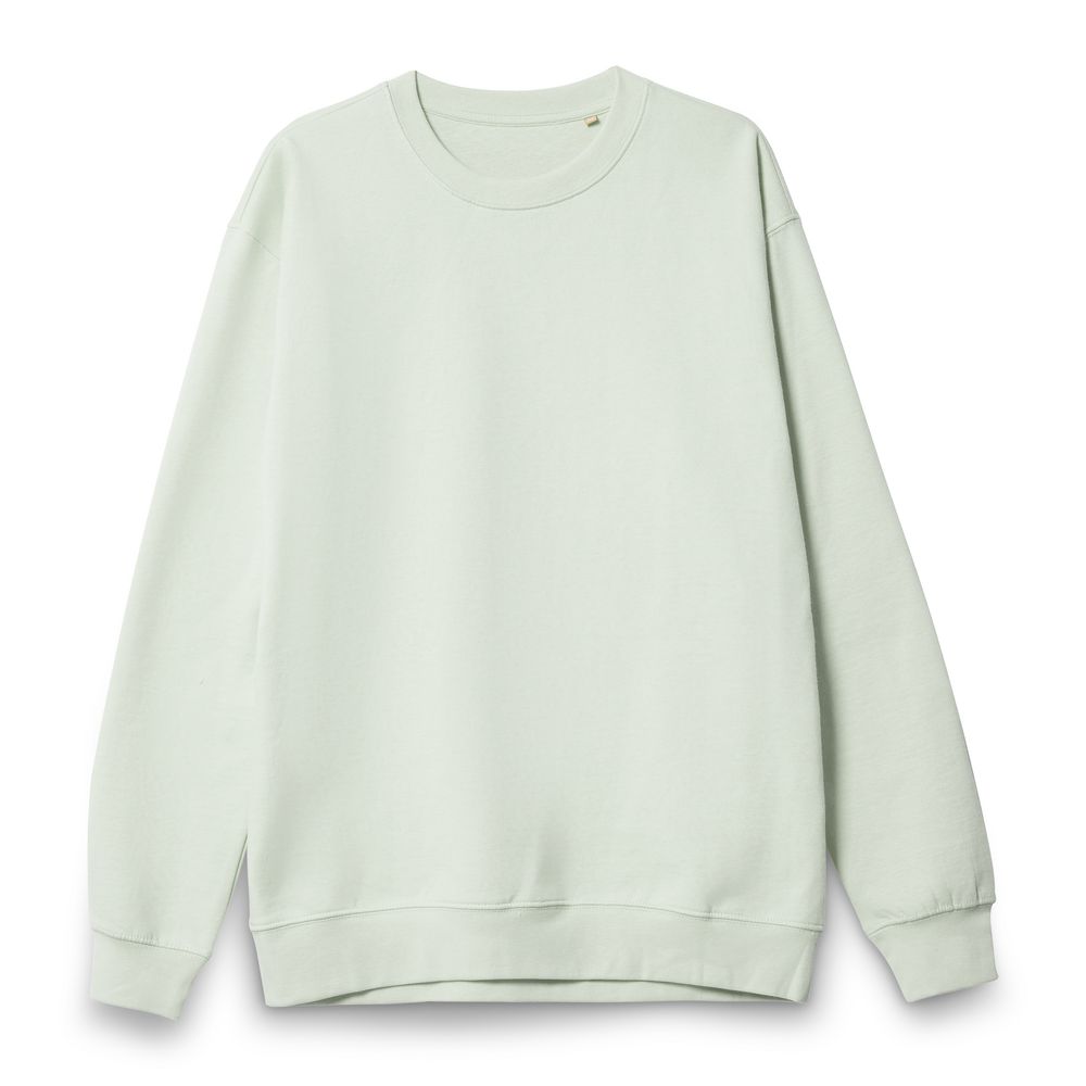 Свитшот унисекс из хлопка и переработанного полиэстера с круглым вырезом и втачным рукавом.