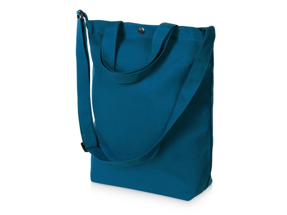 Сумка Helfer из хлопка на кнопке с регулирующейся лямкой, индиго с логотипом компании - отличный способ заявить вашу корпоративную идентичность.