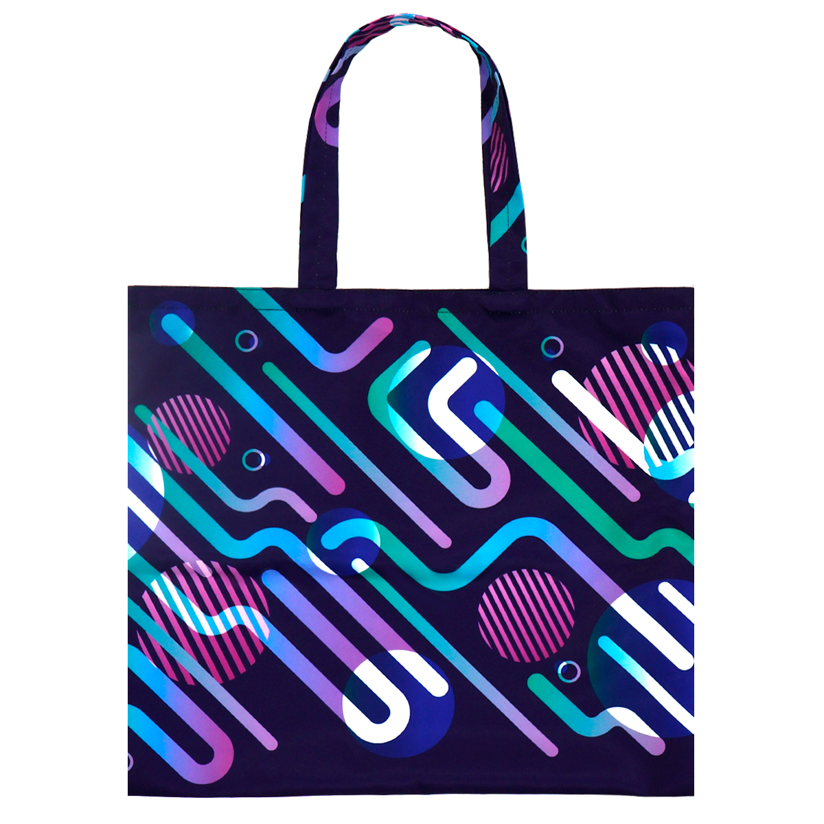 ? Стандартный шоппер с короткими ручками. Полноцветная печать по всей поверхности от шва до шва в соответствии с брендбуком клиента (любой оттенок по CMYK: логотипы, надписи и самые разнообразные принты). Без подкладки внутри.