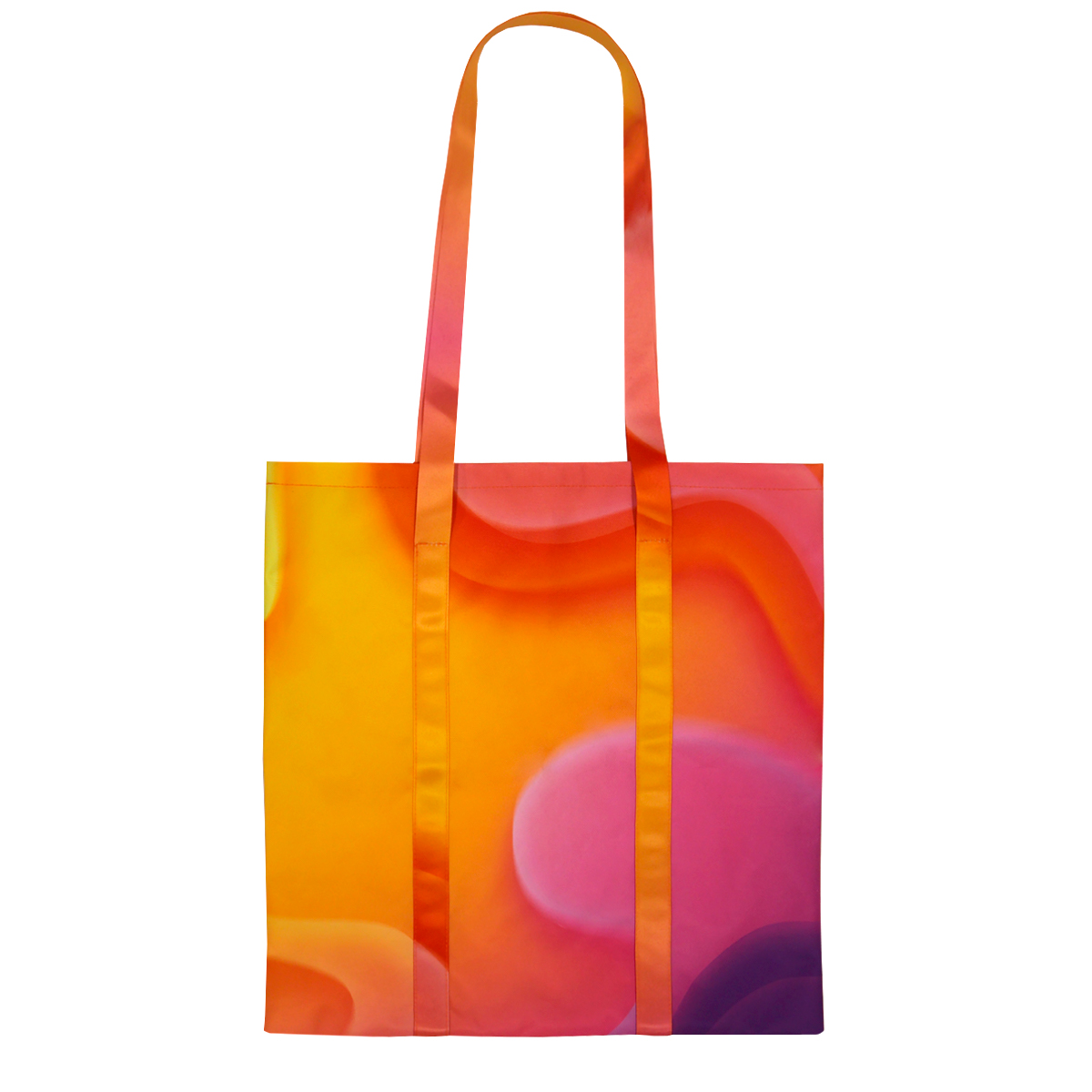 ? Креативный шоппер с необычно реализованными ручками: ручки с полноцветной печатью по согласованному с клиентом дизайн-макету пришиваются в обхват сумки через низ. Брендировать любым макетом по CMYK можно от шва до шва и ручки и саму сумку: выкрашивание материалов делается от края до края без пропусков или отступов. Реализуйте свою фантазию в дизайне и можно создать действительно красивый и креативный шоппер. Изготавливается без подкладки внутри.